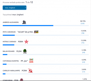 Ambros este urmat de candidatul Blocului ACUM, Ghoerghe Petic pentru care au votat 13,93% din alegători.