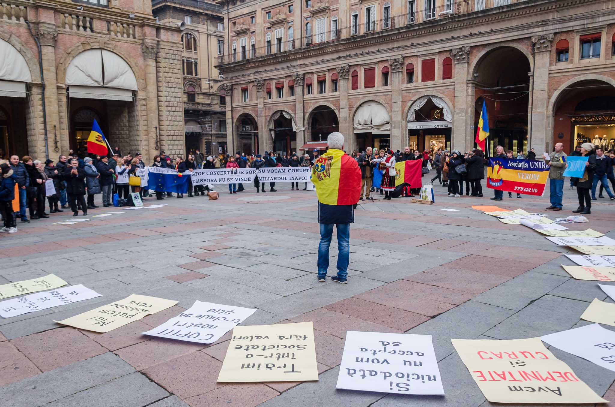 • (VIDEO) Un nou protest al moldovenilor din Bologna. Peste 100 de participanți au semnat o declarație