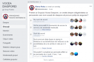 În societate părerile cu privire la acest subiect sunt împărțite. Membrii Grupului Vocea Diasporei de pe Facebook au fost întrebați dacă sunt de acord sau nu cu această obligativitate ca persoanele care revin acasă din diaspora să procure polița de asigurare. Majoritatea celor care au răspuns la sondaj și-au manifestat dezacordul în legătură cu această decizie luată de autorități. 80 de respondenți au menționat că nu sunt de acord cu acest lucru.